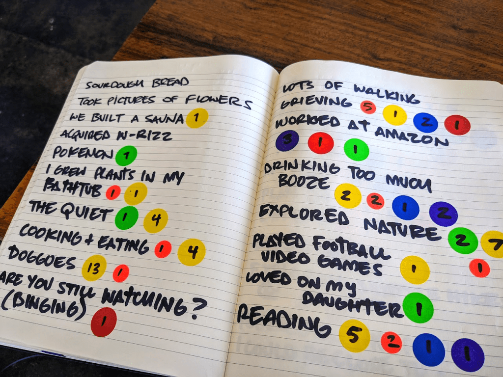 Final note: these categories aren’t perfect, and activities can overlap a great deal. For example, should “taking a walk with my dog” fall under Pets, or Exercise? Is forest hiking considered a Nature or Exploration activity? So let’s bear in mind that these categories were created mainly as a way to summarize the data. Here’s a breakdown for those who are curious: